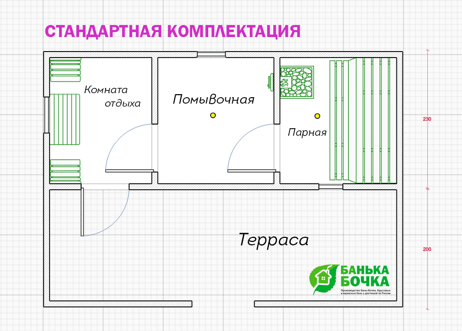 омната отдыха, помывочная, парная, терраса)