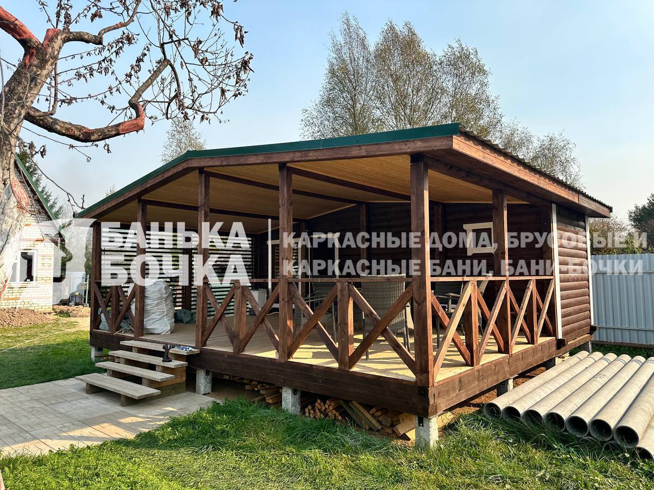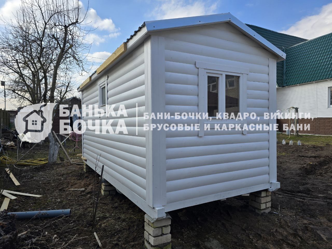 *Сборки на участке нет, доставка и установка готовой бани манипулятором.