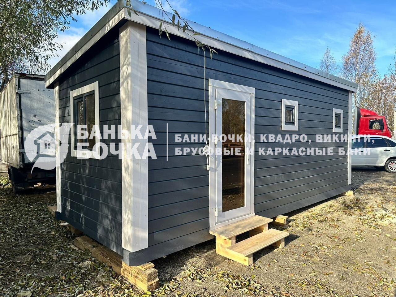 *Доставка готовой бани от производства до места установки рассчитывается индивидуально менеджером через Exсel калькулятор.