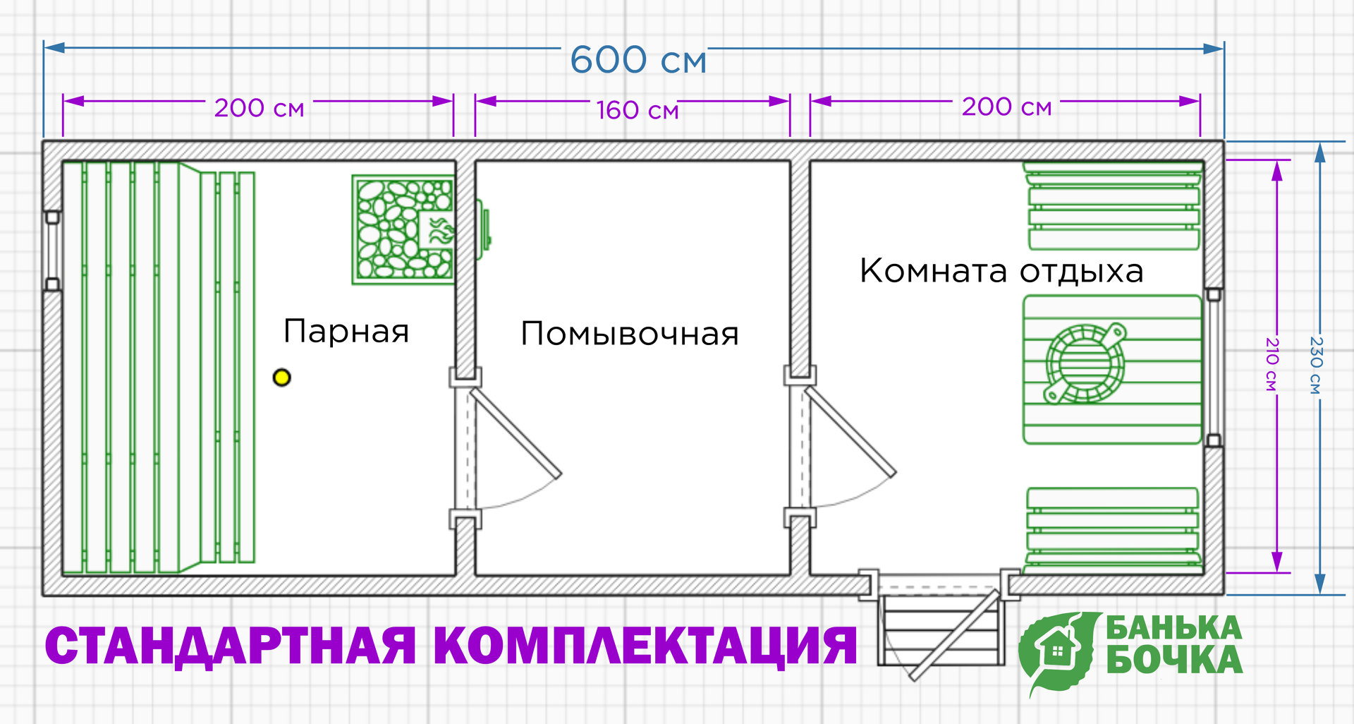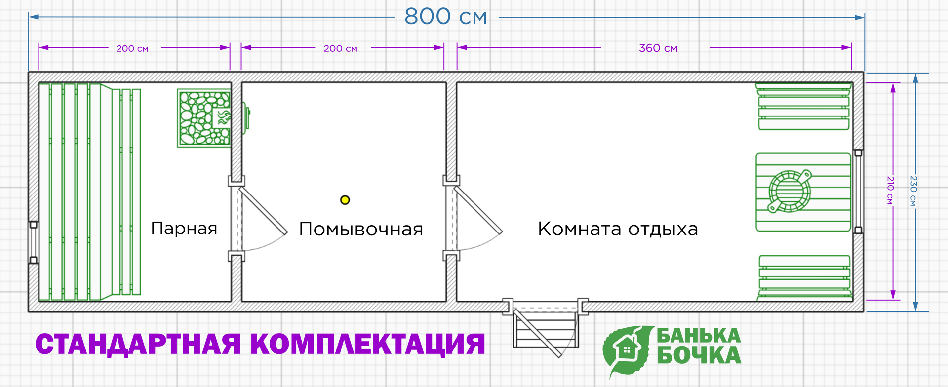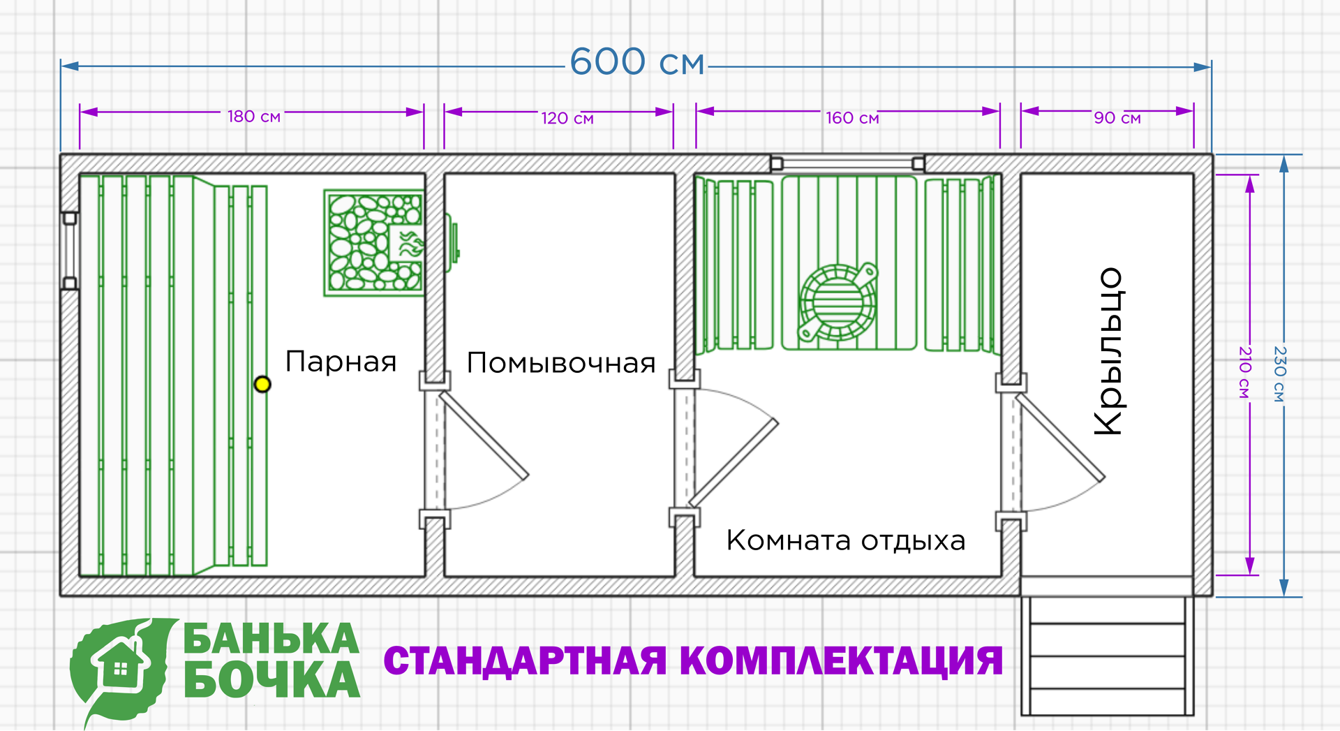 (Парная, комната отдыха, помывочная, крыльцо