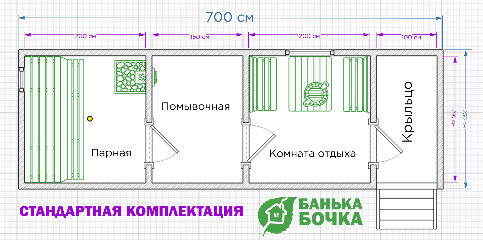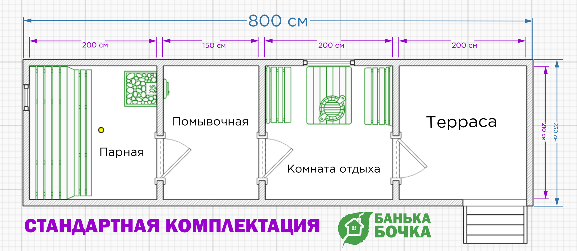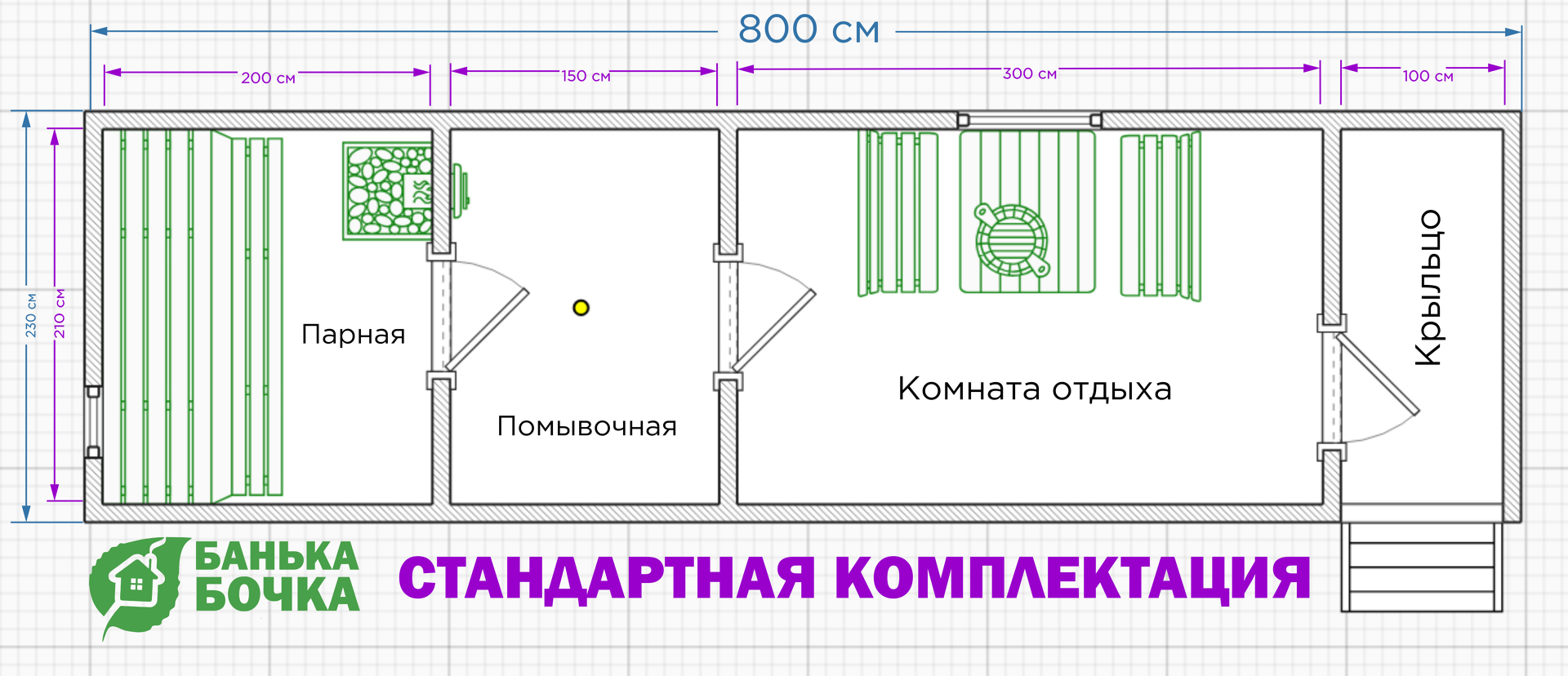 (Парная, комната отдыха, помывочная, крыльцо